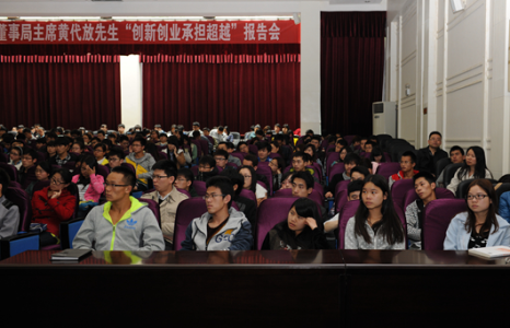 2014年4月29日下午,由管理学院承办的泰豪集团董事局主席黄代放先生“创新创业 承担超越——个人发展的职业选择”报告会在北校区学术报告厅举行。官方网站组织130名同学参加了报告会。