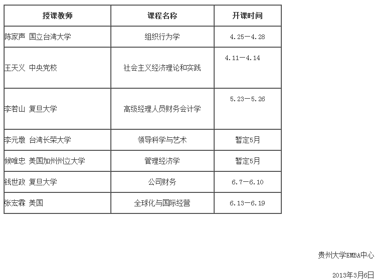 贵州大学管理学院2013年工商管理硕士(双证MBA)招生简章
