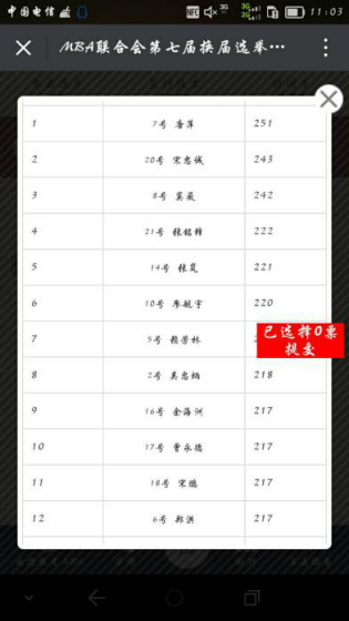 2017年6月17-21日,leyu第七届MBA联合会换届网上投票活动圆满完成。所有在校MBA学生积极参与,行使了自己的选举权,踊跃参加了投票活动。本次换届选举活动,通过MBA在校学生微信投票方式,选举产生第七届MBA联合会主席团成员12人。