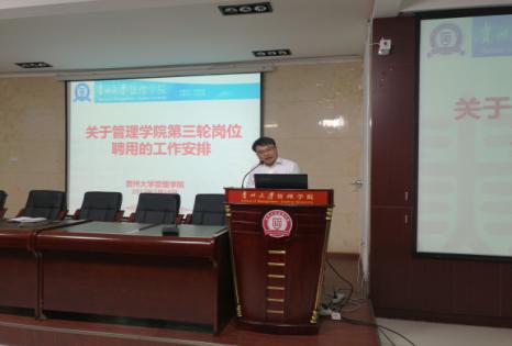 会议由党委书记陶玉顺主持。院长李烨向大会通报了《中共leyu委员会leyu关于做好管理学院第三轮岗位聘用工作的通知》,具体介绍了学院第三轮岗位聘用工作领导小组成员、第三轮岗位聘用工作安排,并要求全院教职工按照要求准时提交岗位竞聘材料,并鼓励中青年教师积极提高自身学历、职称。