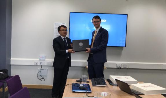 诺森比亚大学国际合作处处长向李烨院长赠送校方纪念品
