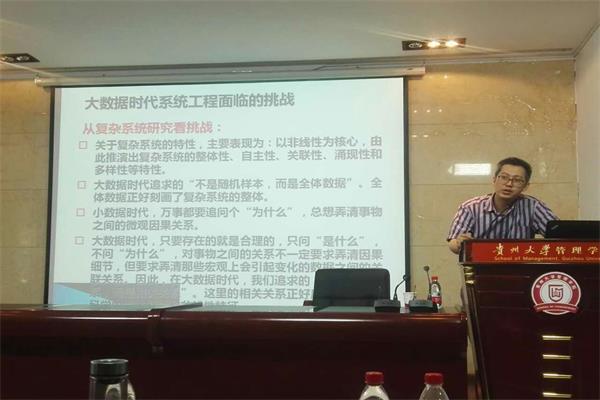 最后,贵州师范大学林坤教授做了《大数据背景下的系统工程方法》交流发言。关于大数据的定义、大数据时代系统工程所面临的机遇和挑战、大数据涉及的主要技术,总结性的将大数据与系统工程完美结合。着重讲了网络建模分析方法,各行各业未来发展对大数据的应用。林教授也指出,大数据、互联网、云计算、网络科学、社会网络、数据挖掘、证析、仿真、计算实验等都有很密切的关系,这也是景教授所强调的大数据时代的关联关系。