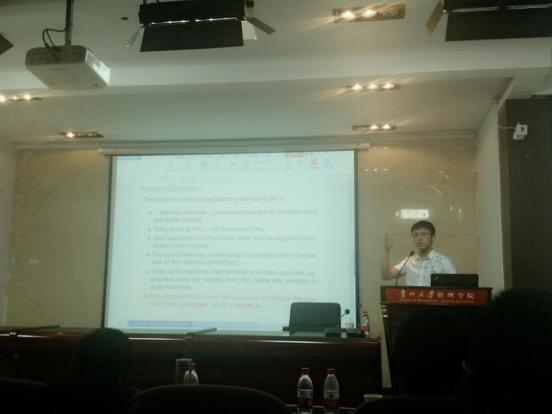 贵州民族大学weijiayin博士做《On-Line Load Balancing with Task Buffer》交流发言。魏博士介绍了贵州民族大学关于大数据方面所做出的努力,包括取得了贵州省工商局数据使用权等,也提到做研究时得不到有关需要的的数据而感到困惑。此时,贵州省大数据局副局长景亚萍教授热情地提供信息,指出云上贵州大数据开放接口,可以免费为科研人员提供一定有价值的相关数据。