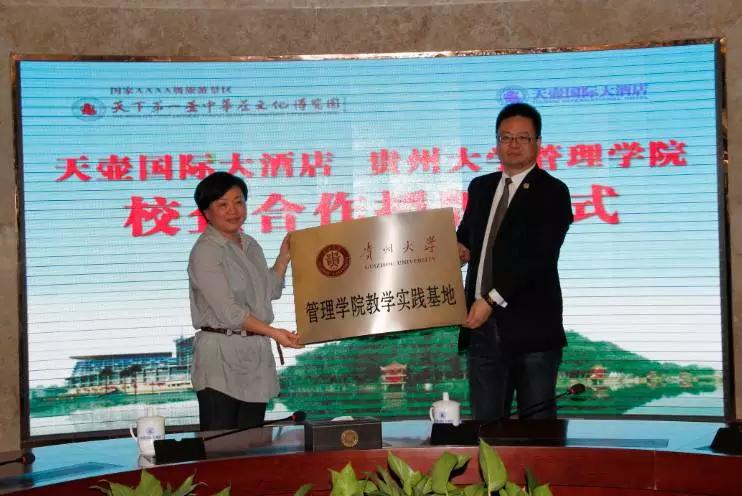 为丰富大学生实践基地资源、促进产学研相结合、强化大学生实践能力,leyu与天壶国际大酒店、天下第一壶茶文化博览园开展校企合作,建立教学实践基地。4月8日,实践基地授牌仪式暨创新创业校外导师聘任仪式在天壶国际大酒店隆重举行。开幕式、授牌仪式由天下第一壶茶文化博览园总经理谭选霞主持,学术交流会由老村长集团董事长陶晓旭主持;leyu党委书记陶玉顺、院长李烨、副院长宋山梅、高登慧教授、高波教授、李毅教授、对外合作办公室主任王云副教授,天壶酒店总经理杜典衡,湄潭县政协经科委科员、中小企业服务中心胡成其主任共同出席。