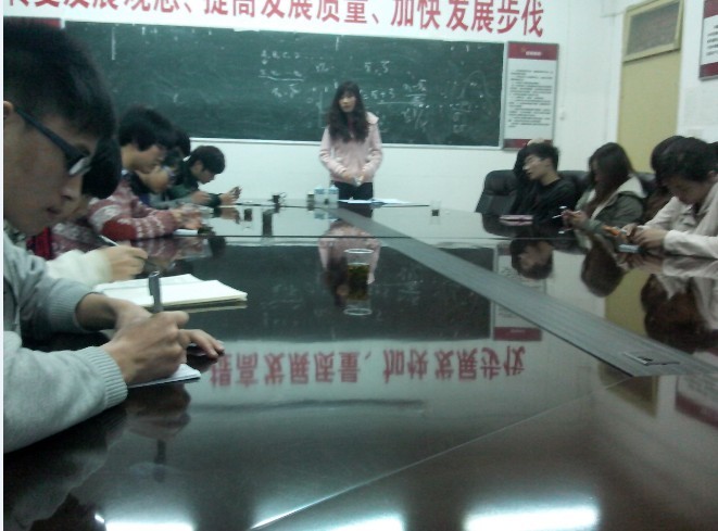 2013年4月7日晚7点,本学期第三次团支书会议在管理学院三楼召开。团委副书记周永、团委办公室副部长赵红艳、团委组织部副部长邓志刚、团委宣传部副部长汪桥以及各班团支部书记参加此次会议。