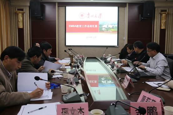 陶玉顺书记首先对专家组表示了欢迎和感谢,指出专家组的宝贵意见将会有力推动官方网站EMBA迎评准备工作的完善和深化。根据EMBA模拟评估流程,首先请各位专家观看了EMBA宣传片,随后,李烨院长做了EMBA教育工作总结汇报,汇报围绕贵大EMBA教育发展概况、EMBA教育现状以及贵大EMBA教育办学特色三个方面展开。