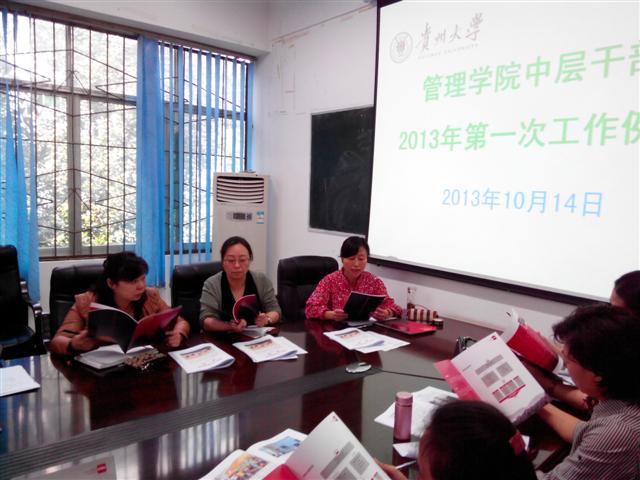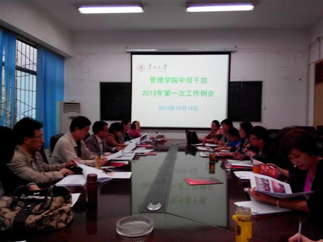 2013年10月14日上午,官方网站在致远楼210会议室召开管理学院2013年第一次中层干部工作例会,院党委陶玉顺书记主持会议,院长李烨,副院长林岚涛、王婷,副书记于松及各系、科室、中心负责人参加了会议。