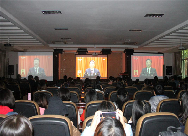 党的十九大开幕式于2017年10月18日上午9:00在人民大会堂大礼堂隆重举行。管理学院组织师生120余人在致远楼三楼报告厅一起见证这历史性的时刻。