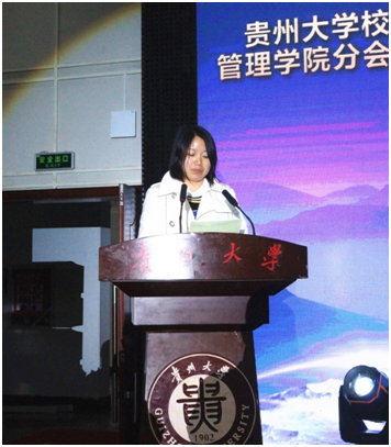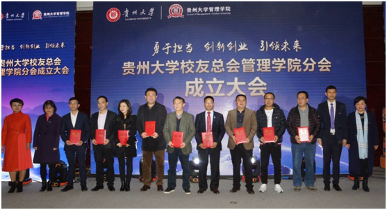 会上,贵州大学对外合作处(校友总会)副处长付芳宣读了贵州大学校友总会管理学院分会成立批复文件。