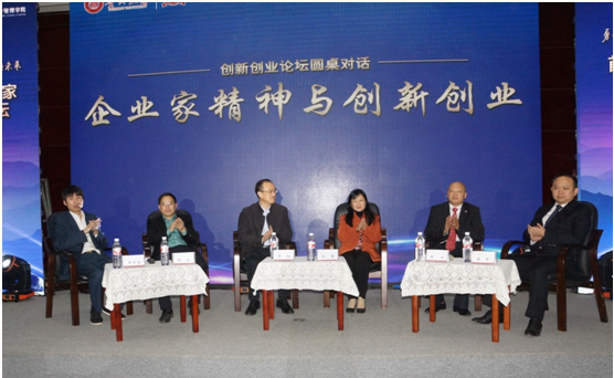 专家代表贵州省文化厅厅长徐静、原浙江大学管理学院副院长张钢,校友代表戴军、胡文、黄清海、冉兴进行圆桌对话,分享各自的创新创业理念和观点。