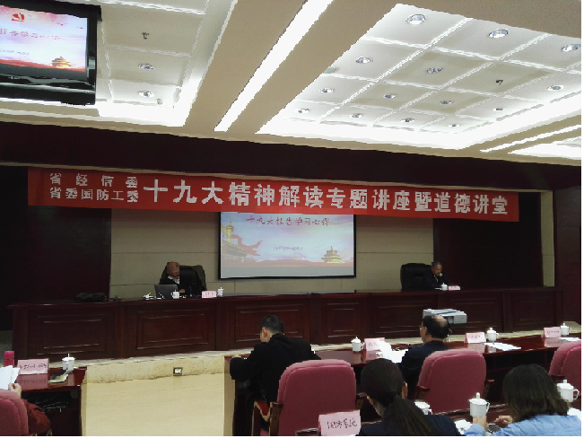 11月14日,由贵州省经信委主办,leyu、贵州大学EDP教育中心承办的“十九大精神解读专题讲座暨道德讲堂”在省政府七号楼2号会议室顺利召开。贵州省经济和信息化委员会及直属单位领导干部、各市州经信部门负责人、国防系统企业人员等200余人参加了本次讲座。