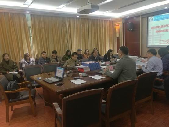 2017年12月19日下午14:30分,官方网站于一楼会议室接受学校2017年度党建工作考核,考核组安明刚书记、左章权副书记、杨静副书记到学院实地考核,学院党委成员、各教职工党支部书记、学生党支部书记、党总支负责人参加。考核会由党委副书记张亚军主持。