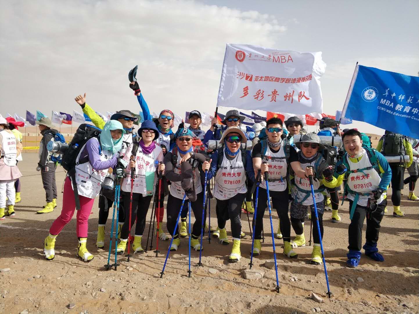 2018年4月28日-5月1日,贵州大学MBA教育中心组队参加了益盟杯第七届亚太地区商学院沙漠挑战赛(简称“沙七”)。与来自中国大陆、港澳台、新加坡、英国、澳大利亚等地区的近百所商学院的2100多名MBA学子,历时三天两夜,在经历了内蒙古阿拉善盟腾格里沙漠的漫天黄沙、炙热烈阳、风雨冰冷后,完成3天70公里的沙漠徒步挑战。