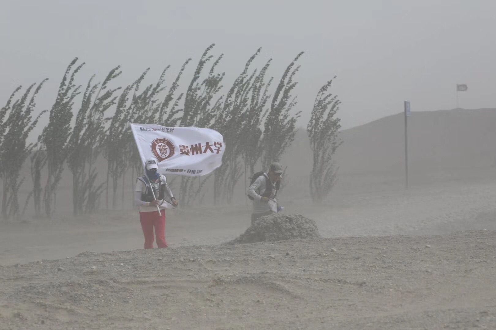 贵州大学作为观摩院校首次参加此项赛事,贵大参赛队员们在负重徒步穿行70公里沙漠过程中,直面高温、饥渴、日照、伤病等各种困难的挑战。并在两夜的沙漠住宿里,体验过肆虐的沙尘暴,经历过顶着大雨哆哆嗦嗦打理帐篷。艰苦环境对队员来说是一次很好的磨练,在过程中不断的自我突破、自我提升 ;在相互帮扶的团队里,体验和践行协作、坚持与责任,展现出贵大人的风采。
