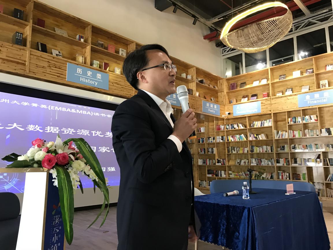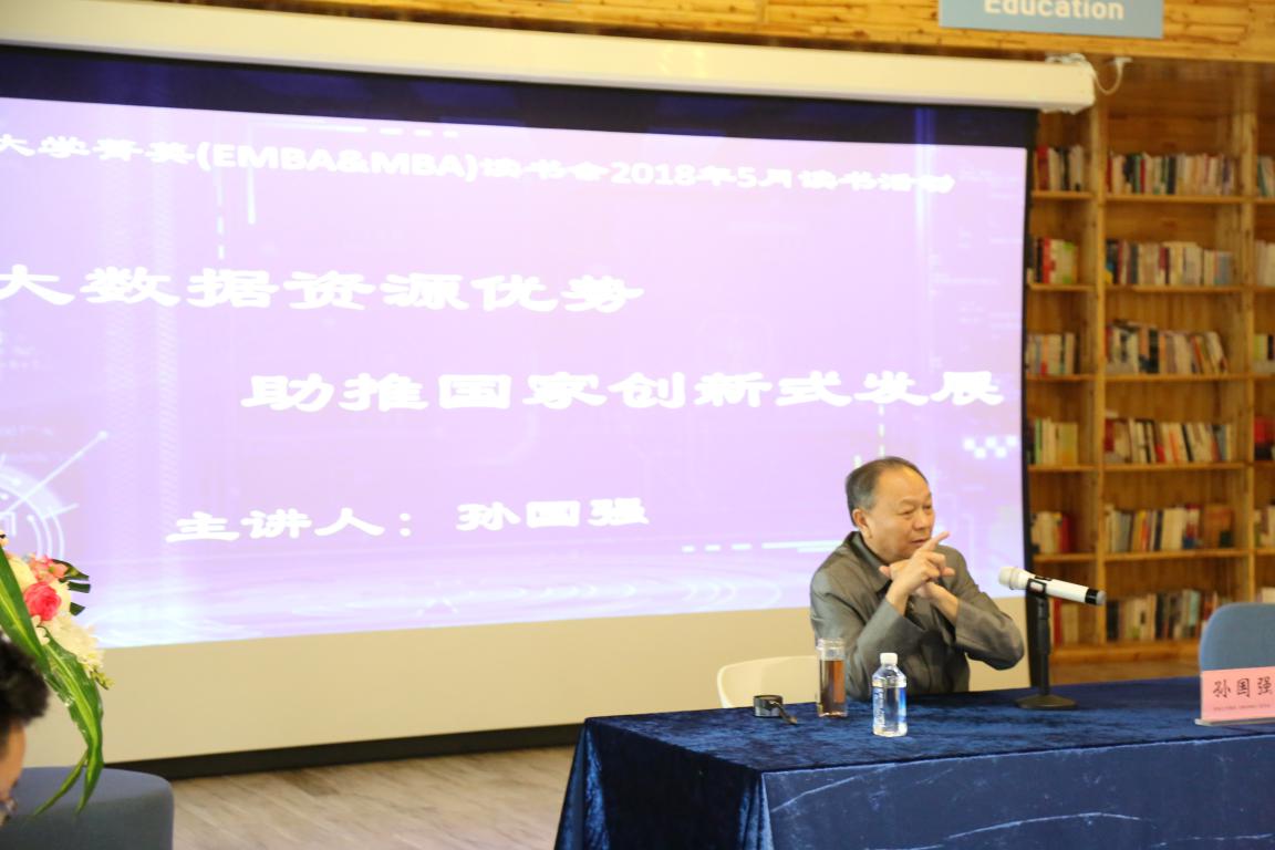大数据时代的来临,带给我们众多的冲击,每个人都应当与时俱进、不断提升,放弃残缺的守旧思想,大胆接受新的挑战。为了解大数据时代带来的变革和更好的适应大数据时代,2018年5月6日上午,贵州大学菁英(EMBA&MBA)读书会特地邀请孙国强导师(原贵州省副省长)在溪云小镇一楼书吧,为读书会成员讲解主题“依托大数据资源优势,助推国家创新式发展”。孙国强导师主要从经济现状、创新型国家发展、以及大数据三大方面结合全球创新领域事迹,对主题进行了深刻的讲解。管理学院李烨院长、溪云小镇运营总监刘懿慧、读书会的李净植(轮执会长