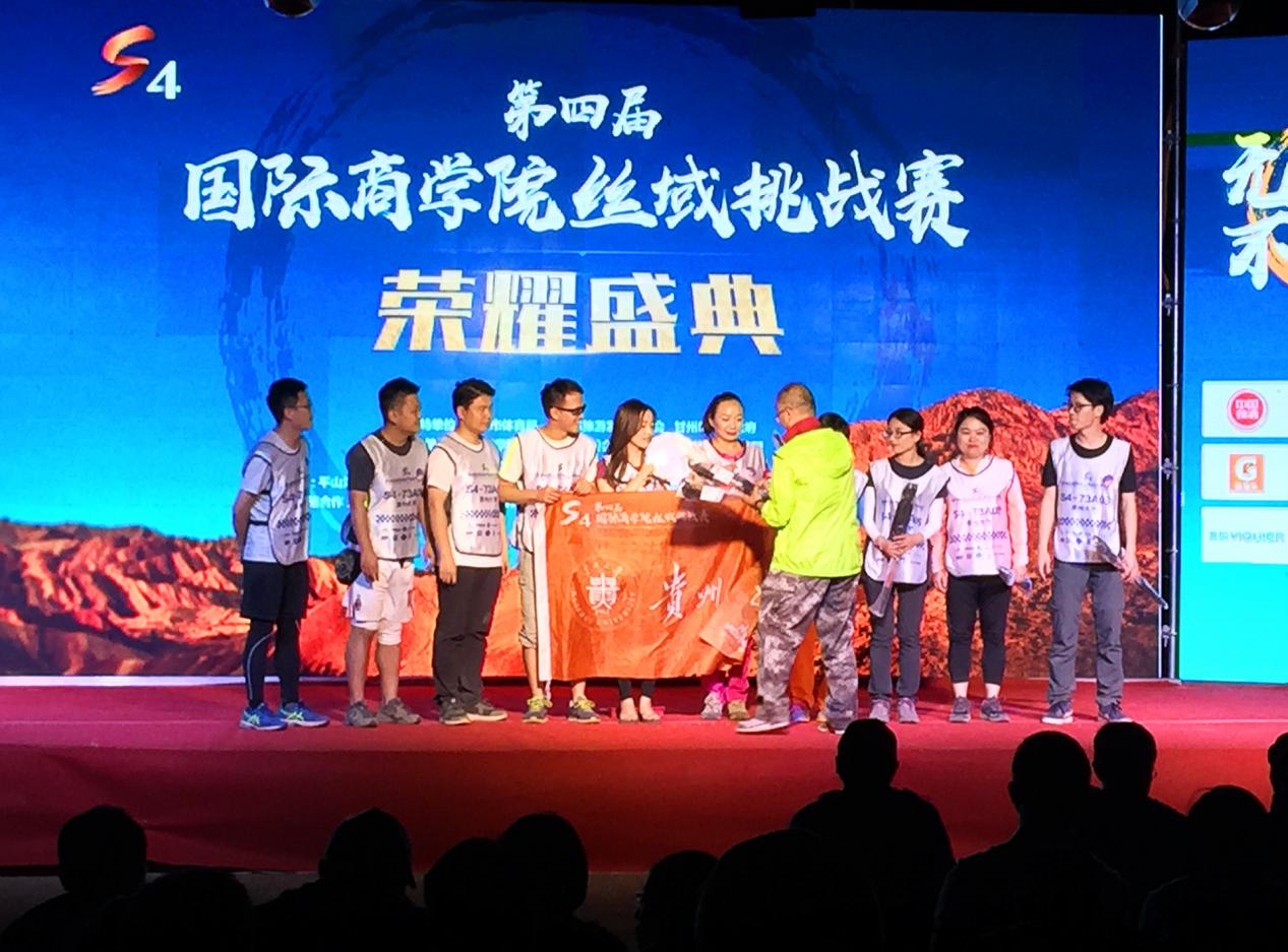 2018年6月15日-6月18日,贵州大学MBA教育中心组队参加了S4第四届国际商学院丝域挑战赛(简称:丝域赛)。此次共有来自北京大学、武汉大学、中南大学等全国60余所商学院和知名企业的600余名丝友参赛,在甘肃张掖的平山湖大峡谷、沙坡小镇进行,历时两天一夜。最后我校队员以优秀的成绩完成A队58公里的挑战,斩获团队第七名,获得“玄奘奖”、“鸠摩罗什奖”、“骠骑将军奖”等荣誉,展示了我校风采。
