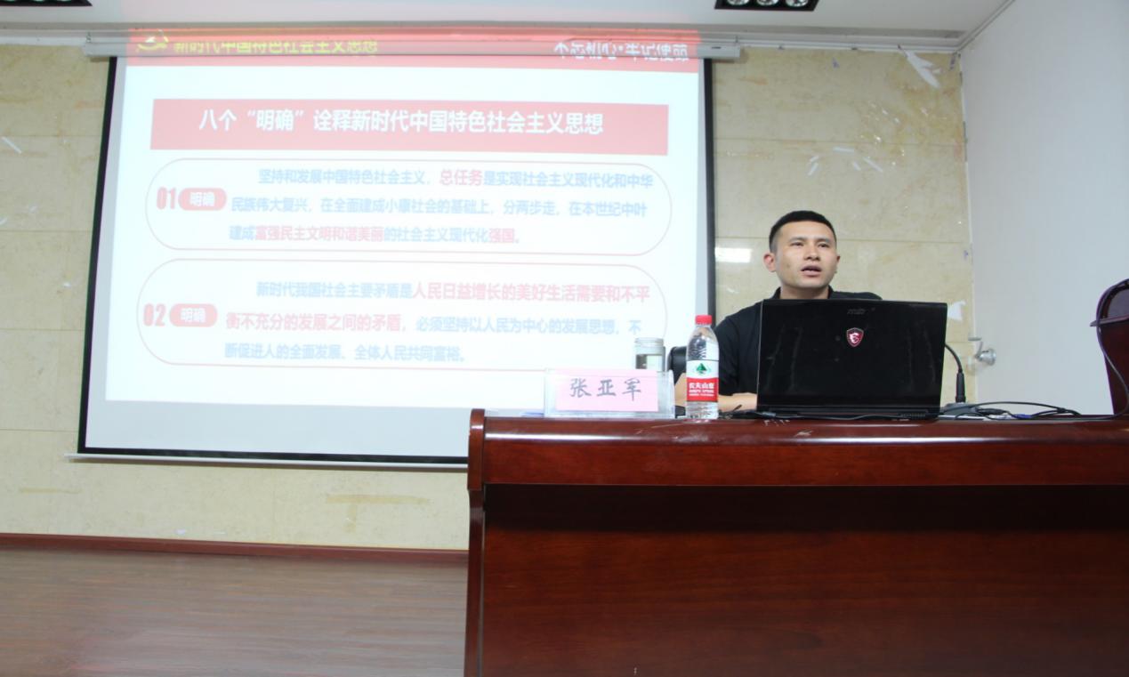 首先,张亚军书记党的十九大会议的主题为切入点,结合十九大报告中的“八个明确”来诠释习近平新时代中国特色社会主义思想,带领大家一同回顾过去五年来国家取得的历史性成就和重大变革,激励广大青年学生,特别是学生党员勇于担当责任使命,既做追梦者,也做圆梦人