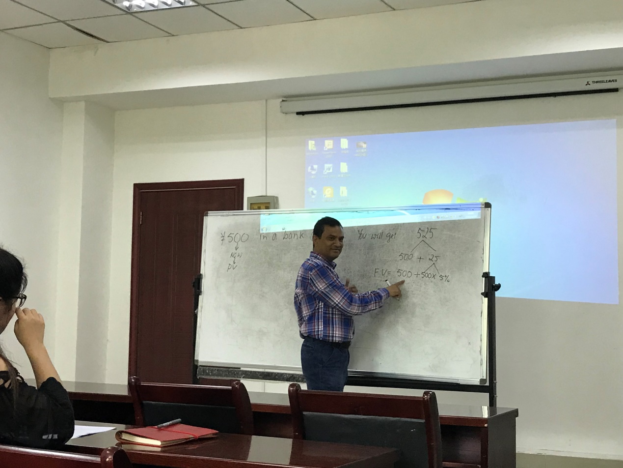 通过上次课对“Finance”理论知识的讲授之后,本周的课堂上Golam Robbani教授继续为管理科学与工程、企业管理、农林经济管理专业的同学来带题为“Finance”的实践操作学习和在生活中的应用,通过讲解不同类型的金融机构之间的差异,并应用实际案例,通过案例计算来展示出不同金融机构在不同利率和不同贷款方式下的异同,用生动活泼的教学方式让我们对金融、贷款和利率等内容有了一个更深入的了解和认识。