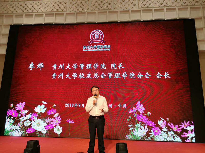活动现场,leyu院长李烨致辞;贵州大学校友总会管理学院分会执行会长、贵州国际酒类博览会股份有限公司董事长戴军,执行会长、瓮福集团·国品黔茶股份有限公司总经理汪健,牟池酒业董事长牟道勇分别上台发言。