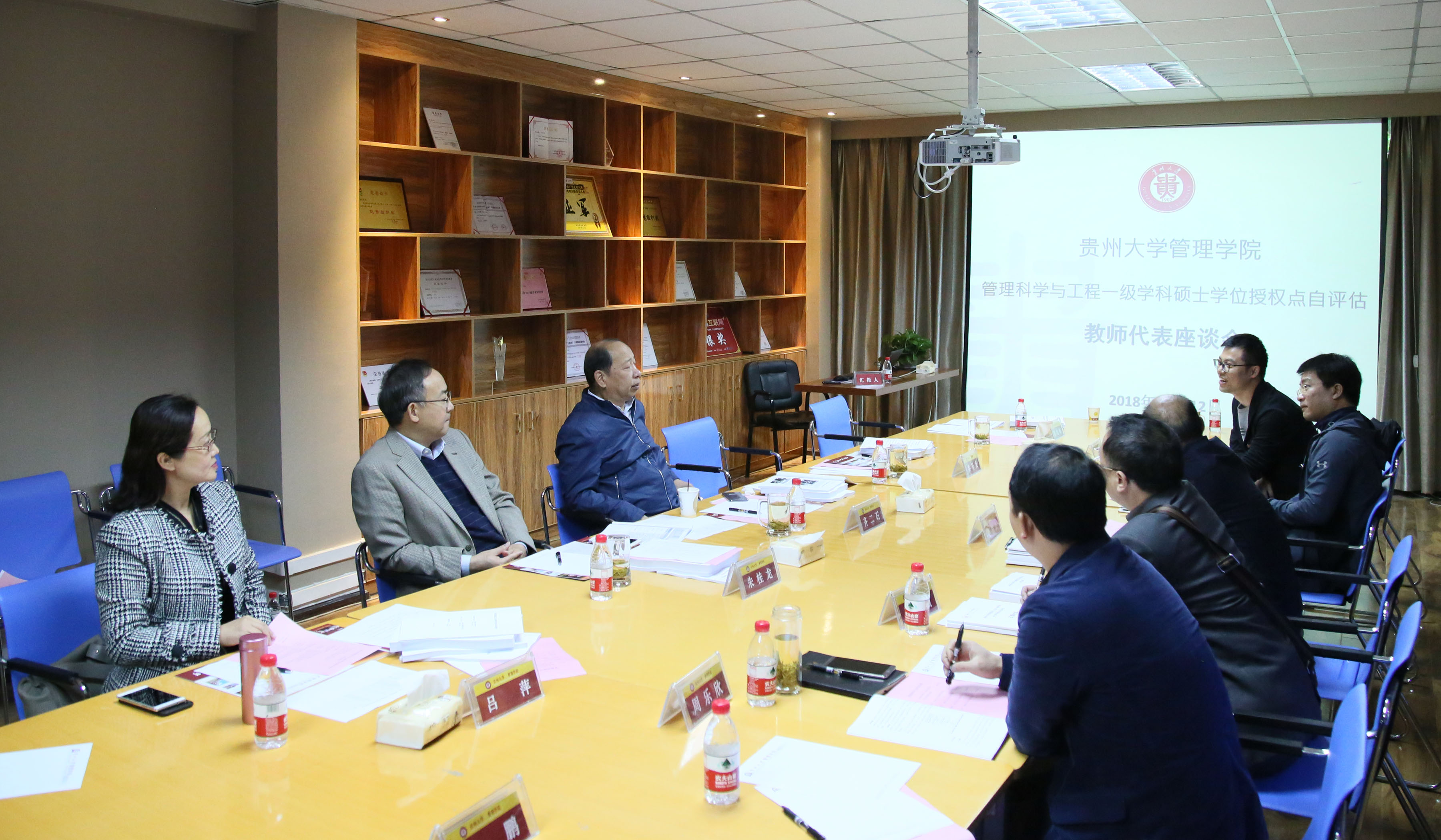 由李烨院长主持开幕式,介绍了与会专家组成员和学院领导,代表leyu向此次评估专家组的到来表示热烈的欢迎,对专家组莅临现场参与学位点合格评估的工作表示由衷的感谢,期望与会专家对贵州大学管理科学与工程硕士学位授权点的现状与发展建言献策。