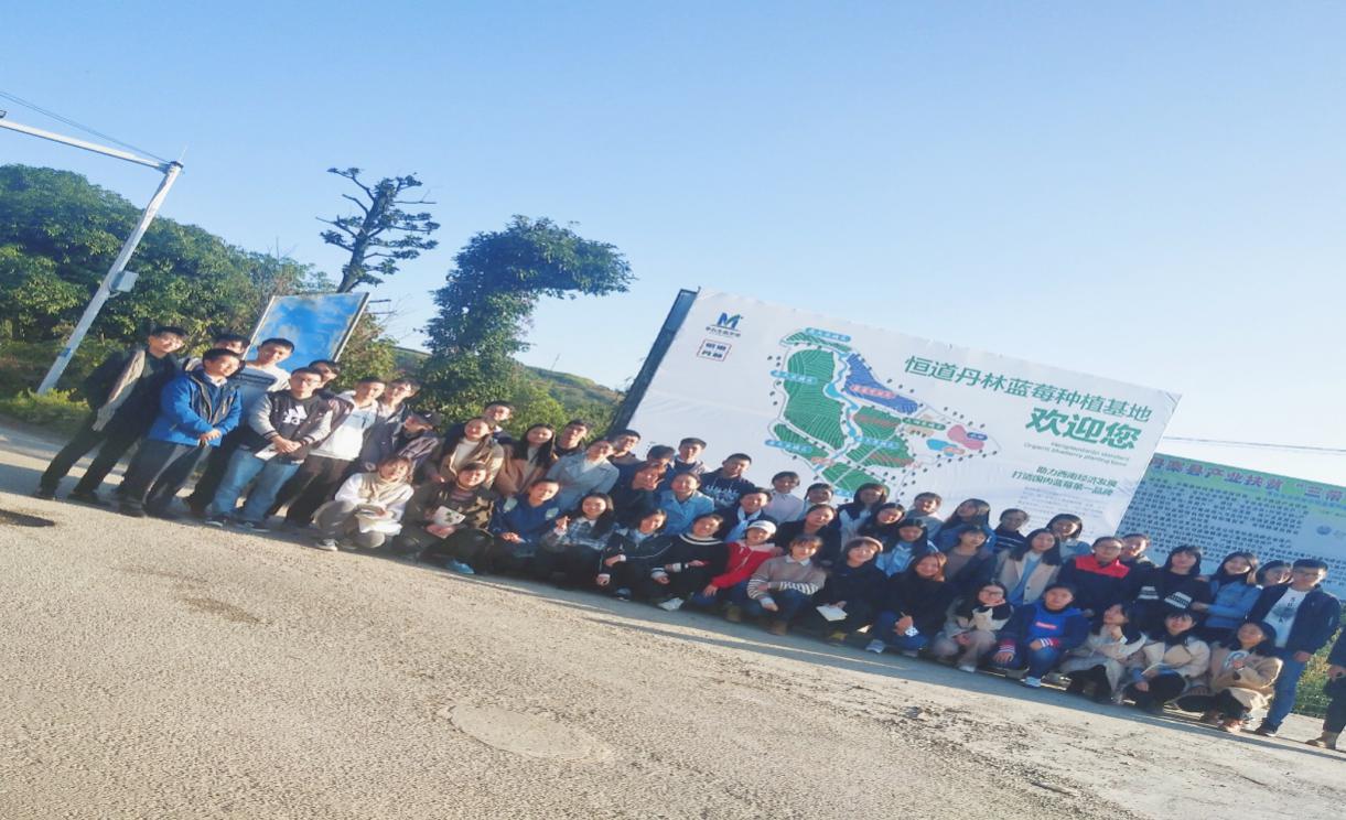 在结束万达小镇的参观学习后,老师们带领大家来到实践教学的第二站——贵州茅台(集团)生态农业产业发展有限公司。该公司是茅台集团“走出酒的天地”的重要突破口,以当地蓝莓种植加工为切入点的生态农业产业扶贫项目。
