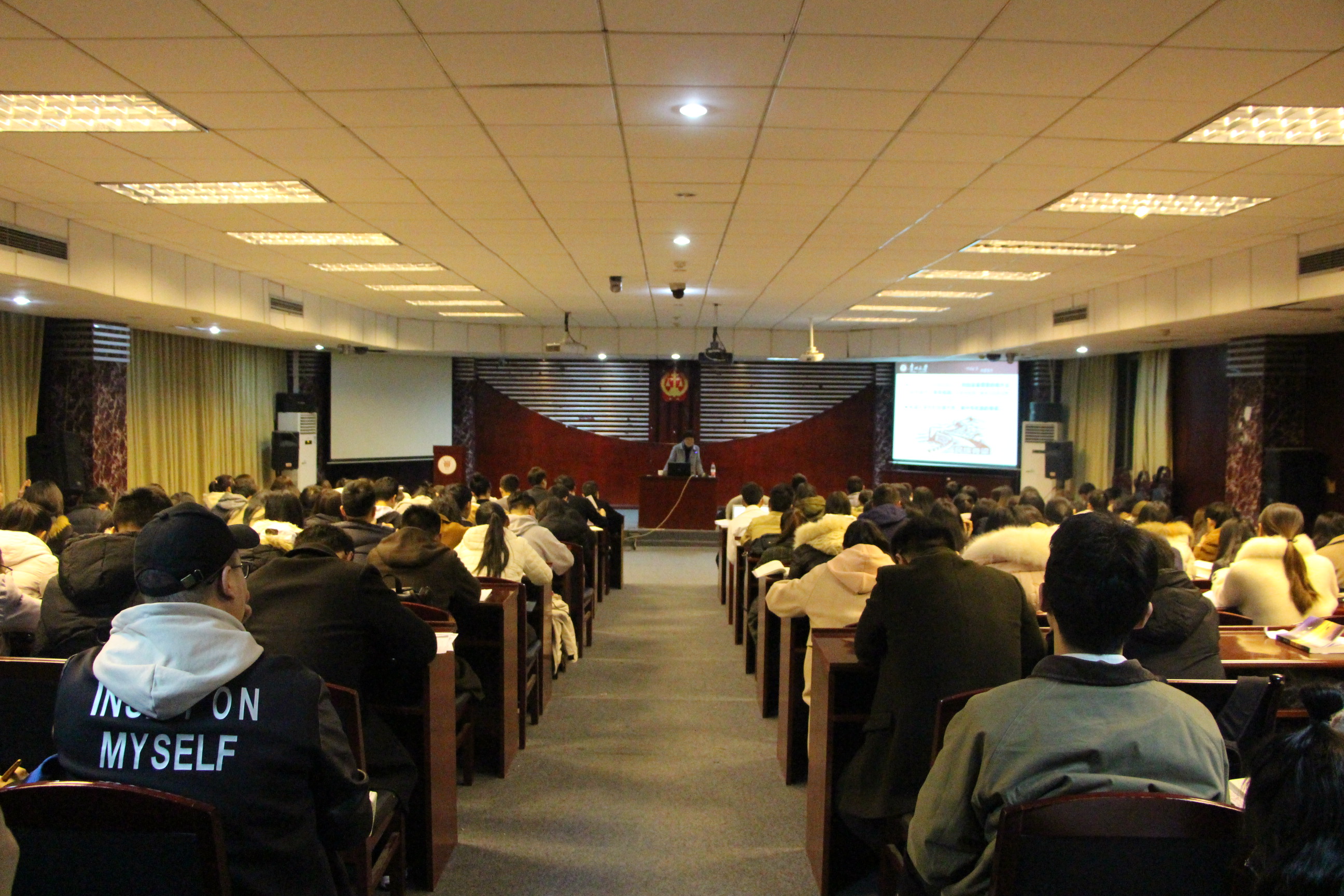 11月25日晚19:00,校党委令狐彩桃副书记受邀为管理学院与法学院第二十九期入党积极分子授课,令狐书记以《习近平新时代青年教育思想》为主题,在慎思楼的模拟法庭为管理学院和法学院第29期入党积极分子培训班的讲授本期学员的最后一堂课。