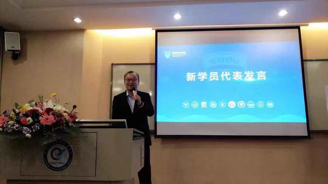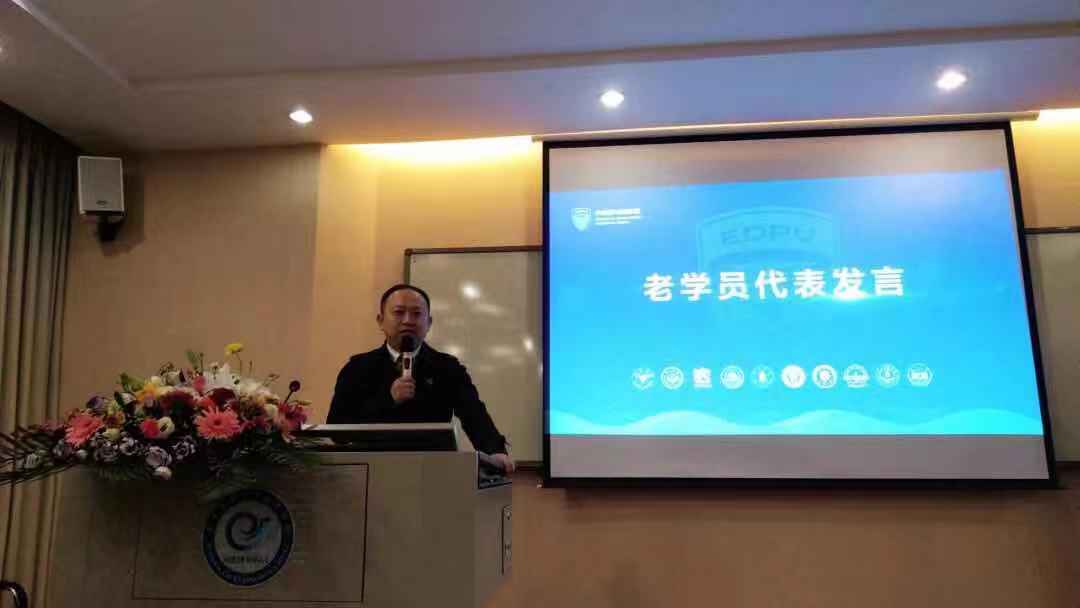 尔后,转型班二期的班长、贵州国际酒类博览会股份有限公司董事长戴军,转型班三期学员、铭浙集团董事长赵刚分别作为学员代表发表了讲话。