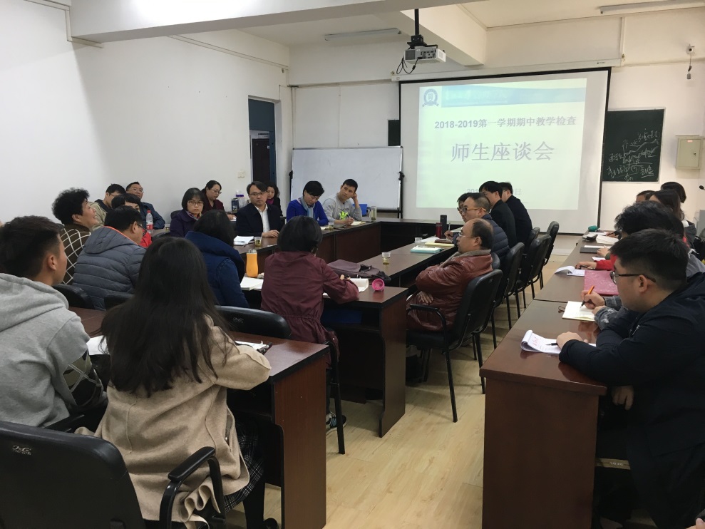 为全面了解教师教学和学生学习情况,听取学生意见、加深师生关系,提高教学质量,根据学院期中教学检查的工作安排,官方网站于11月29日中午1:00,在学院403教室召开期中教学检查师生座谈会。院长李烨,副院长王婷、周莉莉、宋山梅,院党委副书记张亚军出席会议,校督导团李景勃老师,学院督导组老师,各教研室主任、副主任、教师代表,教学科、学生科老师,及2015-2017级各班学生代表共40余人参加座谈会。会议由分管教学副院长宋山梅主持。