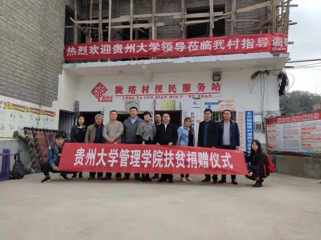 20181130,管理学院院长李烨率学院办公室、工会、对外合作办公室及管理科学与工程系教工支部等负责人一行到官方网站定点扶贫点贞丰县长田镇陇塔村开展调研扶贫工作并看望贫困农户。