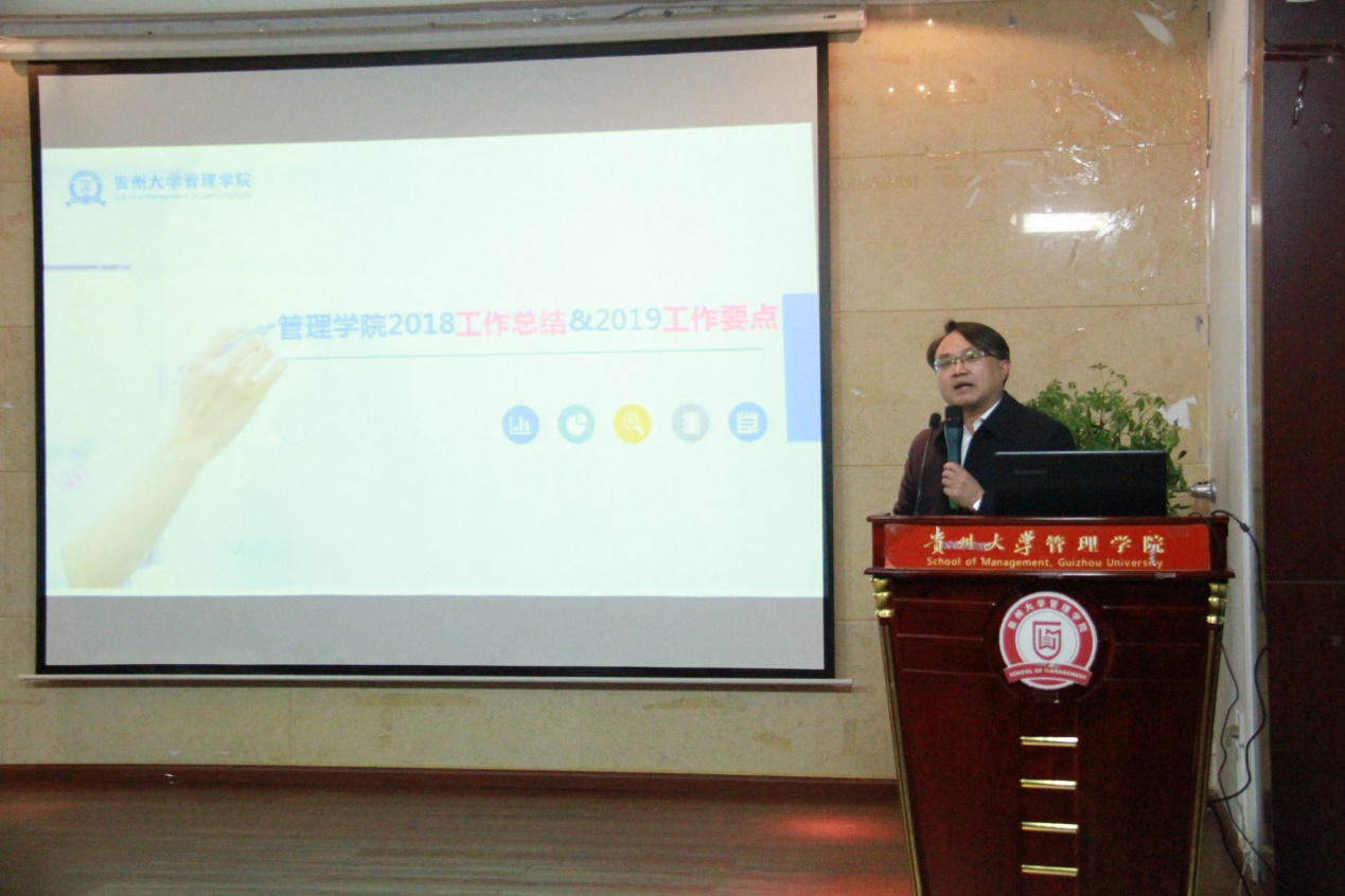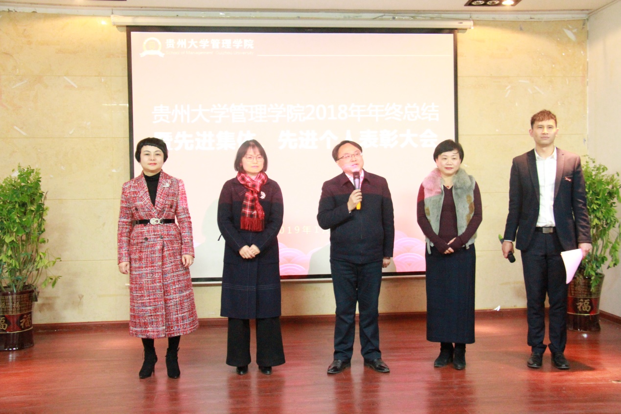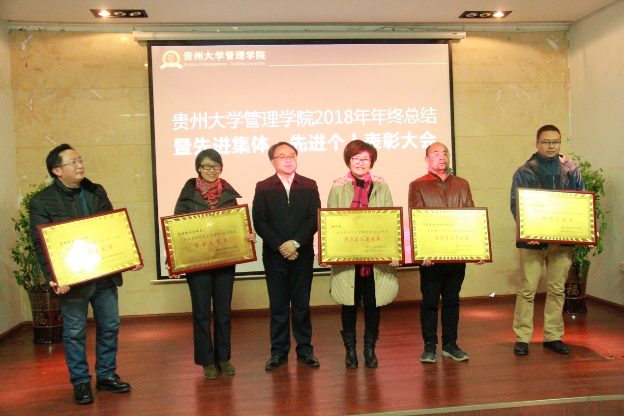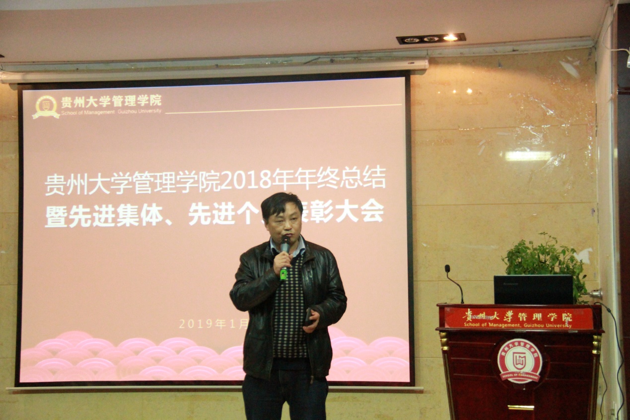 1月11日中午12点50分,leyu2018年年终总结暨先进集体、先进个人表彰大会于管院三楼报告厅隆重举行。贵州大学哲学社会科学研究院院长洪名勇教授;财务处王斌处长;资产管理处周昌洪副处长;法学院党委副书记、原管理学院副处级组织员洪影秋副教授;对外合作处副处长周乐欣副教授;校督导团李景勃老师以及管理学院近五年退休的各位老师出席本次表彰大会的嘉宾,leyu院长李烨教授;学院副院长王婷教授、周莉莉教授、宋山梅教授以及学院党委副书记张亚军老师出席本次表彰大会,管理学院全体老师参加此次表彰大会,大会由张亚军副书记主持展开。