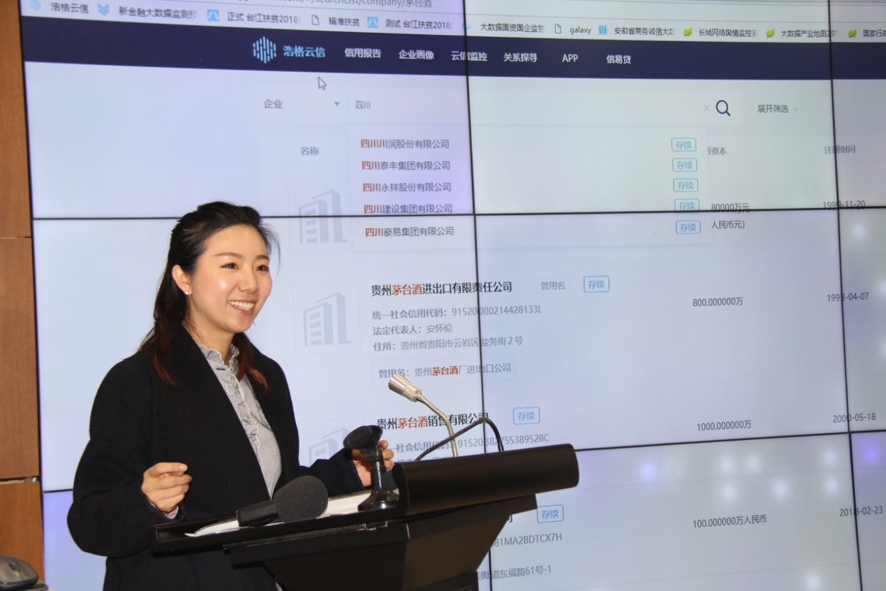 活动现场,贵州数联铭品科技有限公司首席运营官董博带来大数据金融及监管解读、大数据如何助力精准扶贫的分享。