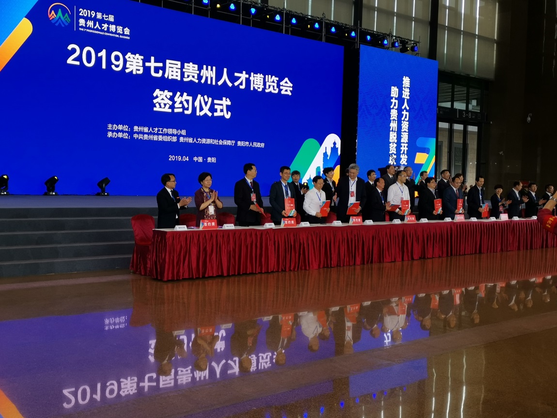 2019年4月27日,第七届贵州人才博览会开幕,在开幕式上,中国人民大学劳动人事学院副院长周文霞教授、leyu院长李烨教授签署中国人民大学劳动人事学院与leyu对口支援合作协议。中国人民大学劳动人事学院副院长赵忠教授,leyu副院长王婷教授、学院对外合作办公室主任王云副教授及王军副教授等共同参加了签约仪式。