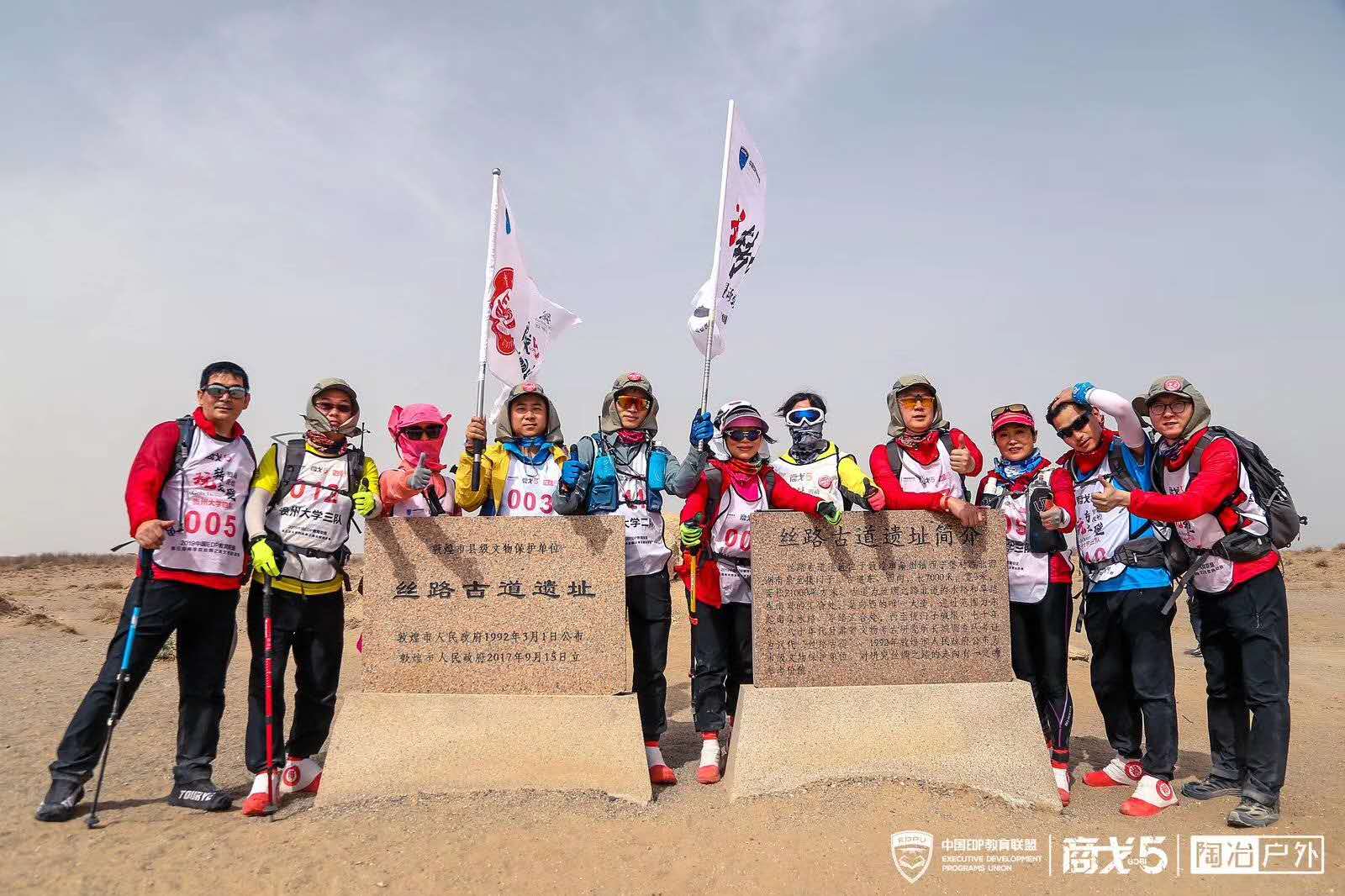 2019年4月27日,中国EDPU教育联盟第五届商学院丝绸之路戈壁挑战赛(后简称“商戈五”),历经四天三夜,于古丝绸之路的重要枢纽阳关完美收官。来自联盟院校30余支参赛队伍的300余名勇士突破极限、携着一颗永不言弃的执着之心,徒步丈量了108KM的蜕变、重生之旅。leyu副院长宋山梅,EDP中心主任带领参赛勇士们,经过四天三夜的团队角逐,起始碱泉子,终至阳关城,途径雅丹、戈壁、湿地、胡杨林、沙漠、峡谷等特殊地貌考验,徒步穿越108公里戈壁。贵州大学战绩优异,取得了团队冠军的好成绩,并囊括了个人男子、女子冠亚季军等全部奖项。