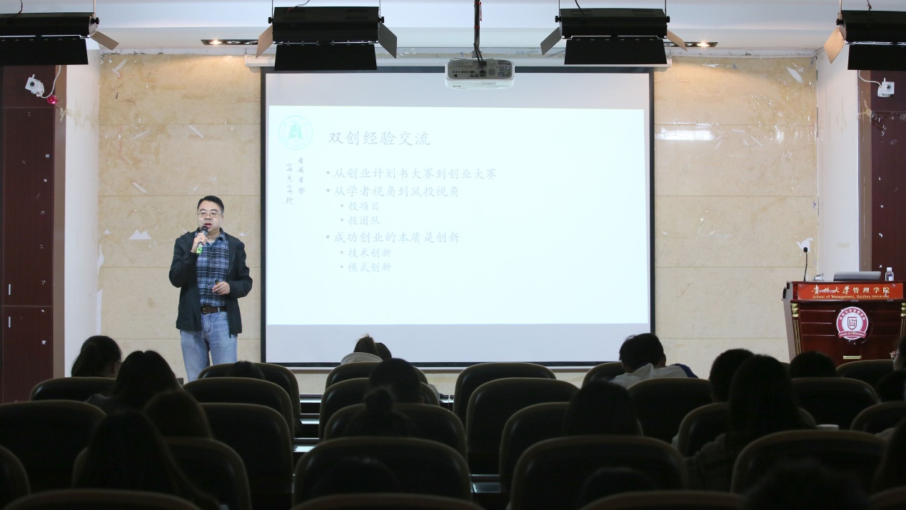 讲座中周明教授站在时代的前沿,紧扣国家发展战略,以人为本,围绕大学生成长成才就业,从如何选择一个好项目,打造一个好团队,写好一本好的商业计划书,做好一个好的演讲,以及具备一个好的心态5个方面深入浅出、生动形象的讲解了如何在双创大赛中取得好成绩。周明博士结合自己多年创新创业的亲身实践经历,结合官方网站特点,为同学们提出了很多创业项目的高贵建议,让在座师生受益匪浅,对创新创业之路有了更新更深的认识和领悟。