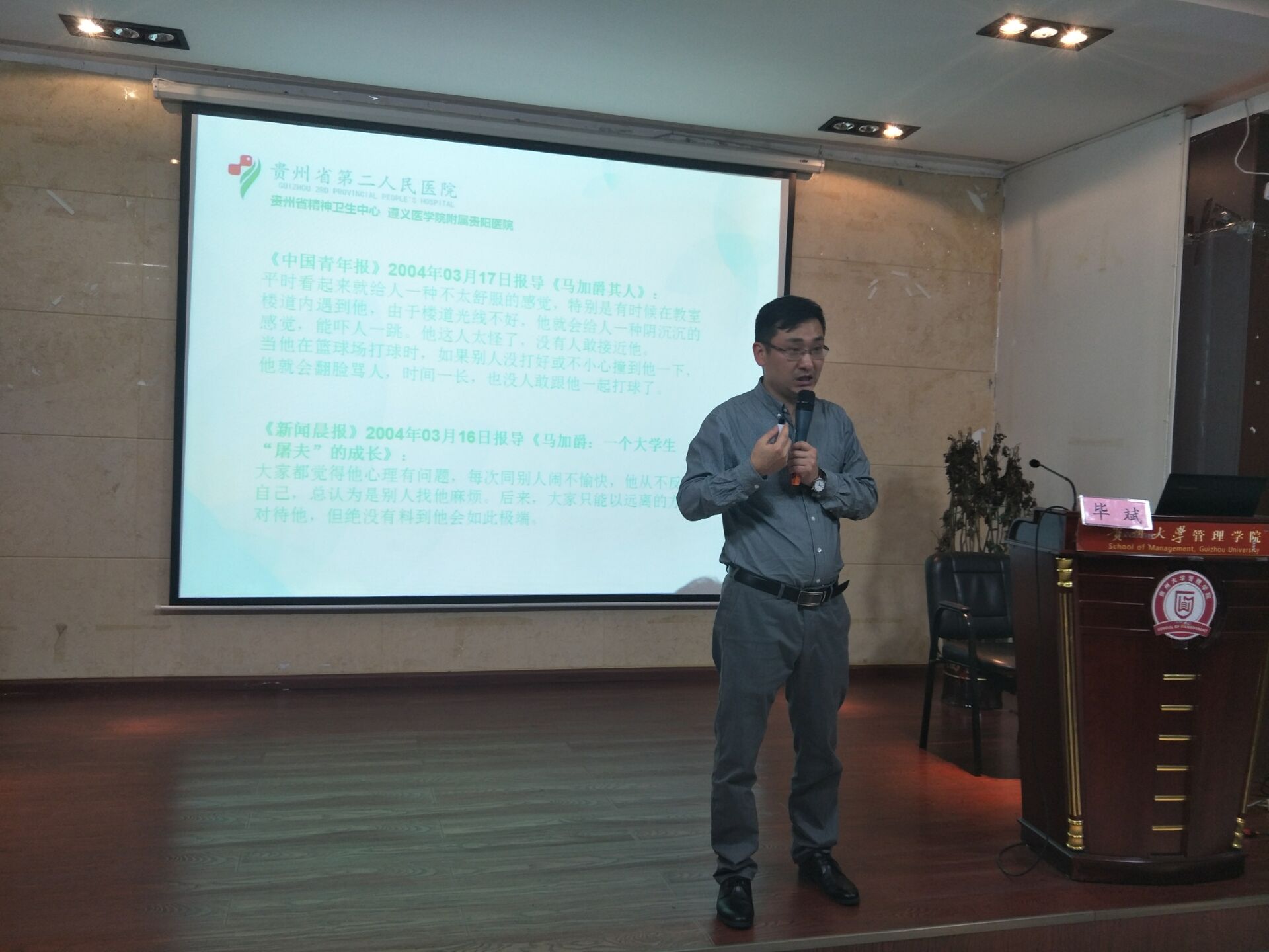 4月22日16:30,leyu邀请了贵州省第二人民医院心身科主任、副主任医师毕斌老师在学院三楼报告厅为官方网站学生开展了主题为“青年期在校学生压力识别及应对策略”的讲座。管理学院学生科科长芮丽华老师出席此次讲座,学院各级同学参加本次讲座。