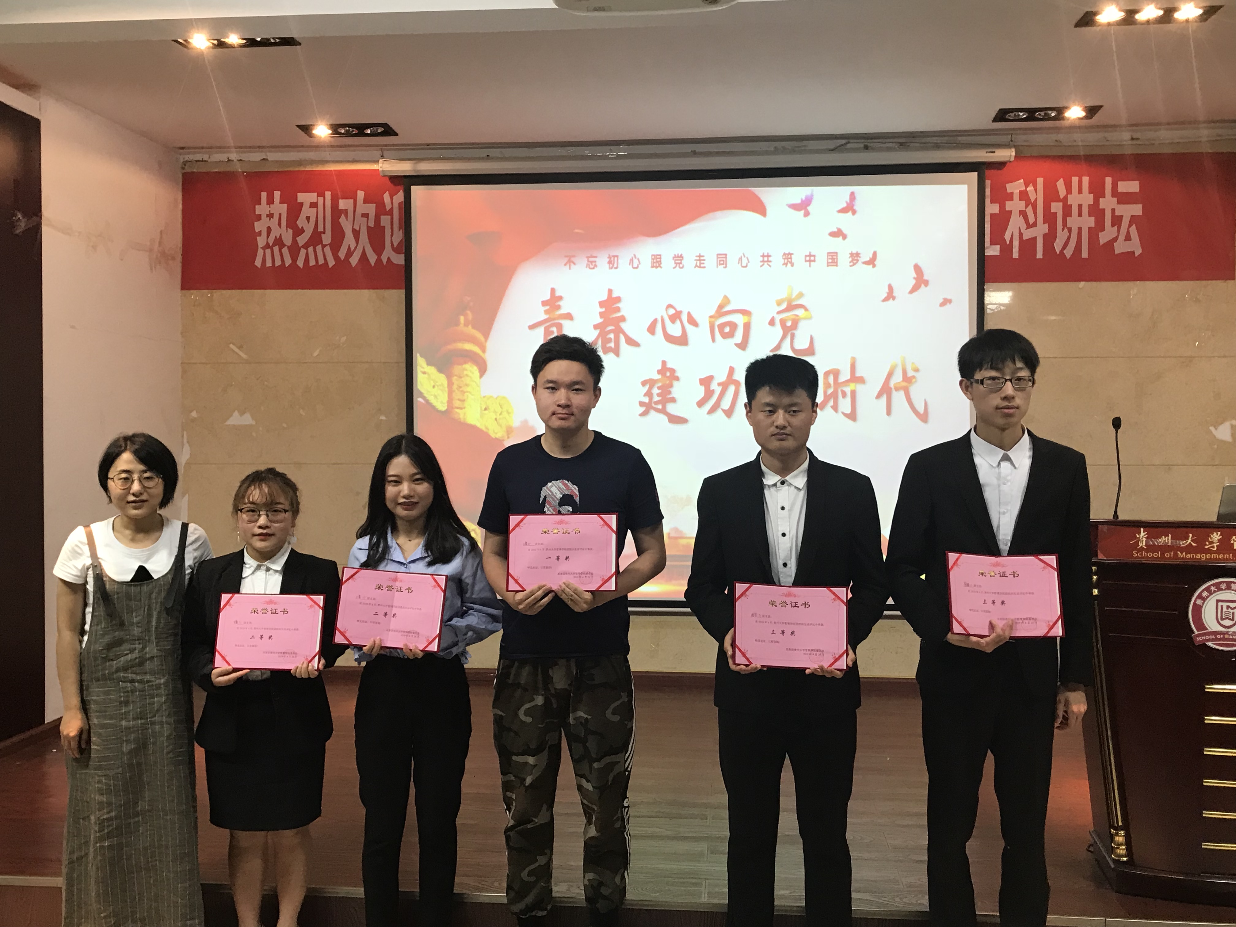 最后,在本次团评活动中,工程管理161班团支部荣获一等奖,电子商务171班团支部和工商管理161班团支部荣获二等奖,市场营销171班团支部和财务管理171班团支部荣获三等奖。获奖班级合影留念后,本次活动圆满结束。