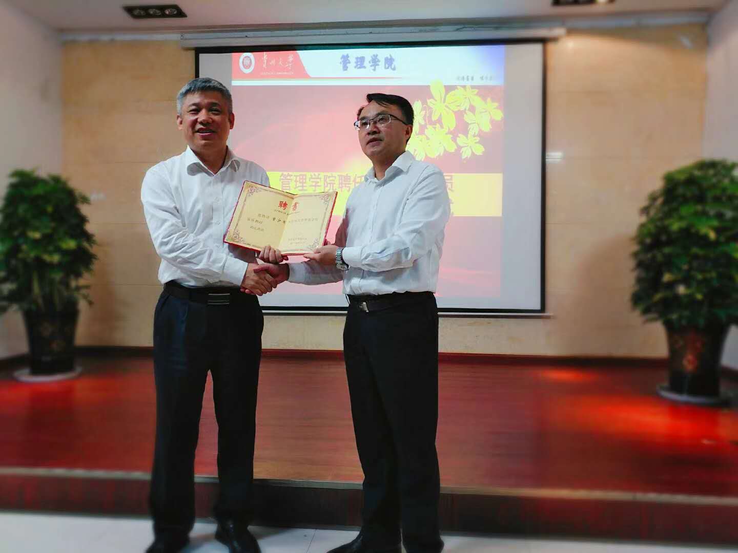 在讲座开讲之前,首先举行了曾少军研究员聘任leyu客座教授仪式,贵州大学管理学院院长李烨教授为曾少军颁发聘任证书。