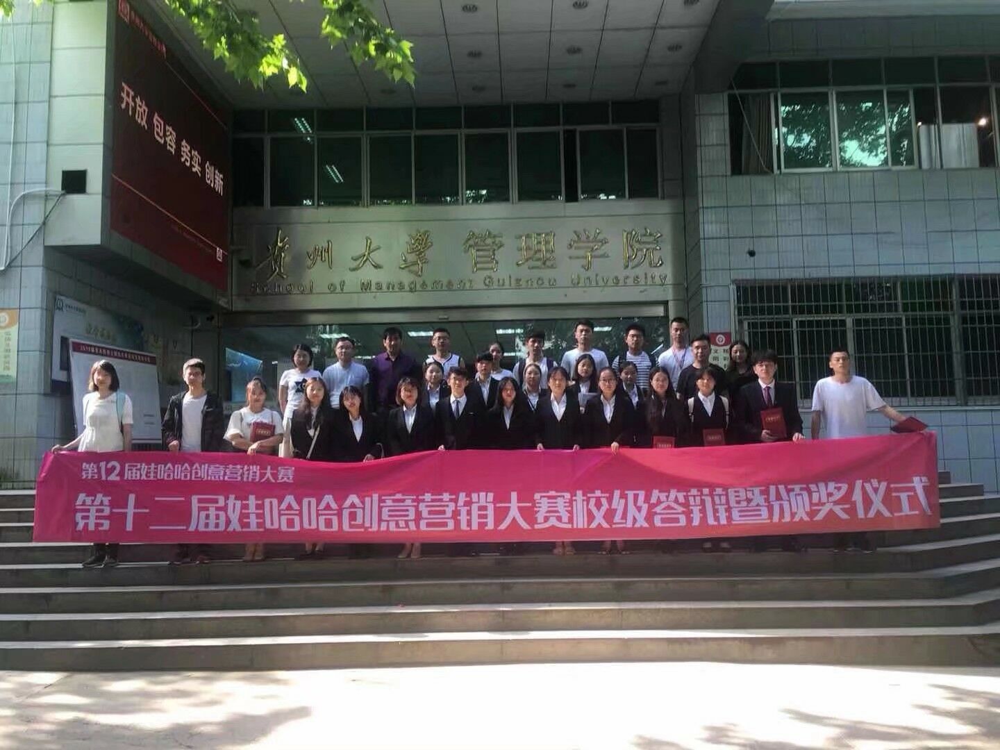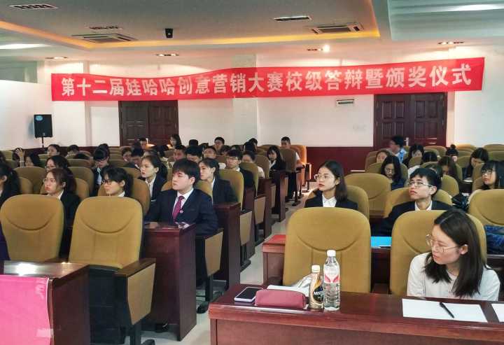 为激发大学生思维创新能力,充实学生校园生活。5月27日14点30分,贵州大学团委主办,leyu承办的第十二届娃哈哈营销创意大赛校级答辩暨颁奖仪式于管理学院三楼报告厅隆重举行。管理学院EDP中心主任张勇教授;管理学院创新创业中心负责人、营销学博士刘遗志副教授;杭州娃哈哈集团贵州市场企划部陈登明主任;杭州娃哈哈集团贵州市场策划部白国梁主任作为本次答辩大赛的评委,贵州大学校团委龙汶书记出席本次大赛嘉宾,共有八支来自贵州大学各学院的队伍进入最终的现场答辩环节。