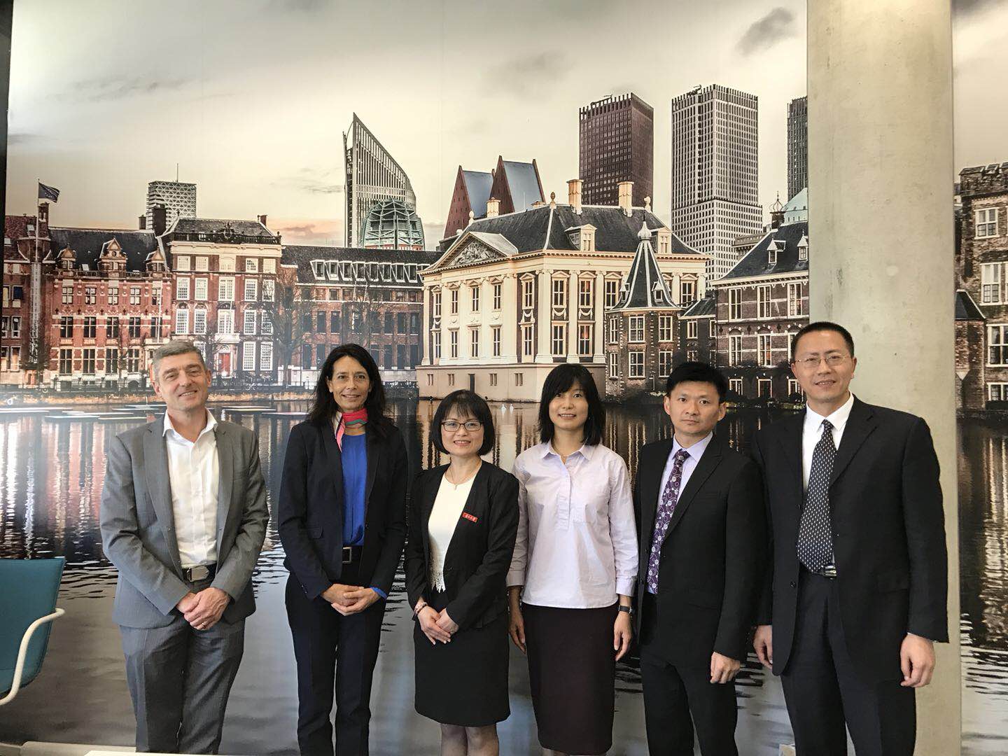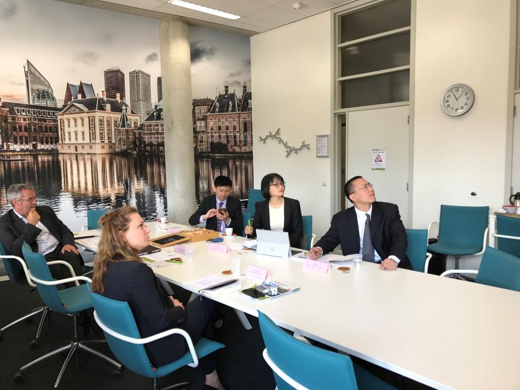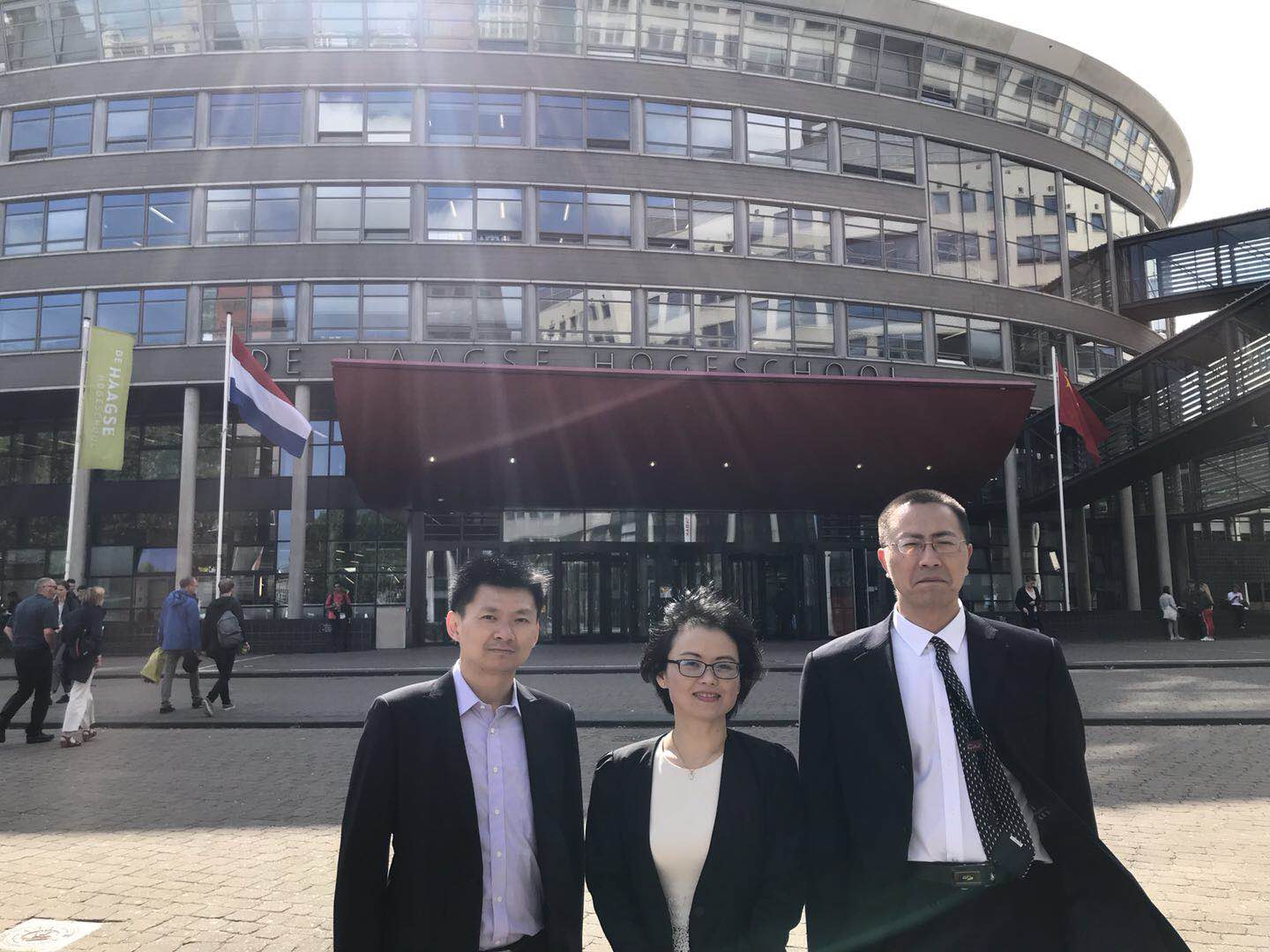 6月21日,访问团来到了位于荷兰海牙的海牙应用技术大学受到了校方热情的接待,海牙应用技术大学在主楼升起了中国国旗。上午,海牙应用技术大学(HHS Hague)商学院院长B.S.(Simone) Fredriksz女士、亚洲事务合作联络人Qian Yabo女士、该校硕士项目负责人Manon Pieper、研究生院院长Drs C. Berendsen和我校访问团进行了座谈交流,双方就学生交换、研究生联合培养、师资互访和科研合作等方面进行座谈交流,并商讨详细具体的合作方式。下午与该校商学院院长B.S.(Simone) Fredriksz、BFM系系主任drs. Jacob R. LAAS及相关负责人相互介绍了各自学校的基本情况,就学生交换、师资互访和科研合作进行了交流。