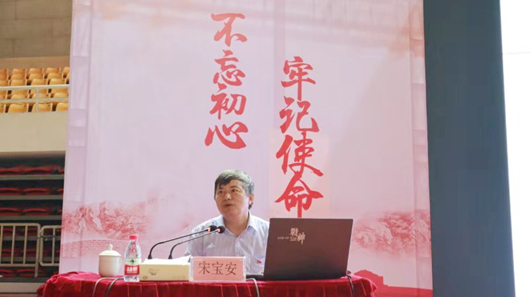宋宝安从学校基本情况与发展机遇、立足创新的青年英才、把论文写在脱贫攻坚大地上的贵大教授、自身在贵大学习工作科研的体会以及近期科研工作方向等五个方面做报告。