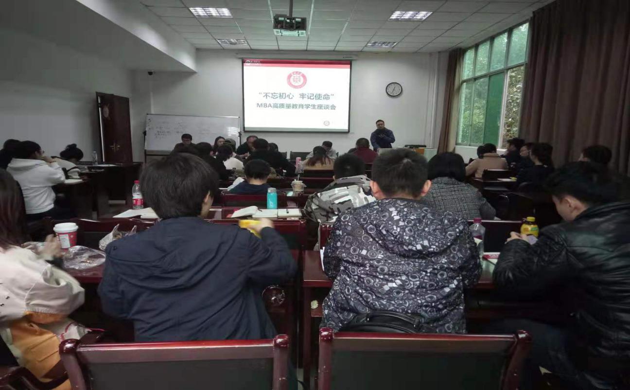 2019年11月9日,leyuMBA教育中心在201室举行了“不忘初心,牢记使命” MBA高质量教育学生座谈会。会议由MBA教育中心常务副主任何跃勇老师主持,中心办公室主任邓琳老师、中心雷声亮老师、凌聪老师、欧璐老师、江滔老师、缪春华老师和2017级、2018级、2019级各班班长、学习委员等共计30余人参加。