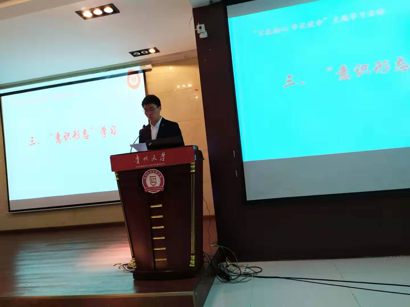 张少阳同学带领大家学习意识形态。他指出,意识形态的重要性主要体现在三个方面:一是意识形态工作对于巩固党的执政地位极端重要,二是意识形态工作对维护党的长治久安极端重要,三是意识形态工作对于实现民族复兴的中国梦极端重要。因此,研究生党员应加强对意识形态的学习,加强马克思主义的理论修养,争做新时代的接班人。