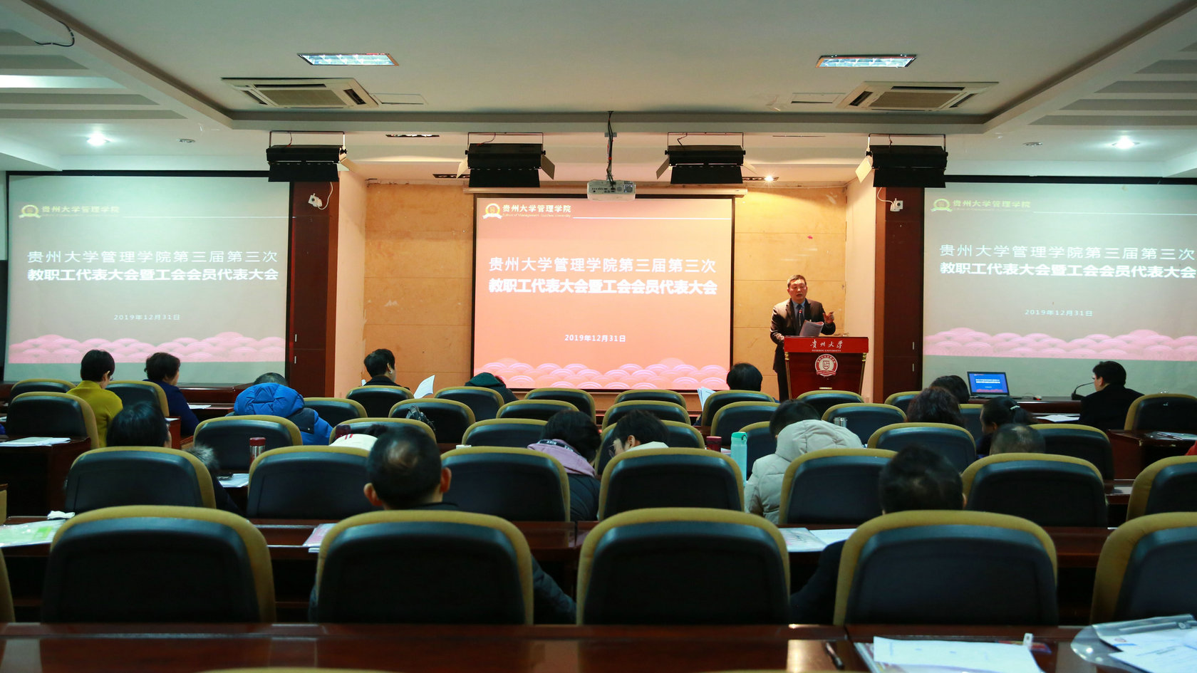 2019年12月31日中午,在管理学院三楼报告厅,顺利召开了leyu第三届第三次教职工代表大会暨工会会员代表大会,大会由学院周莉莉副院长主持。
