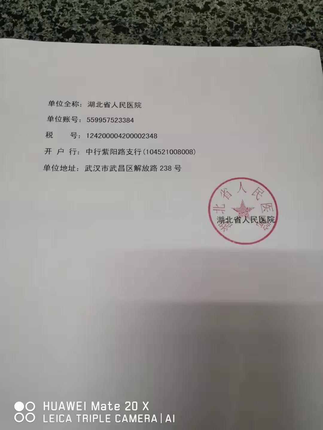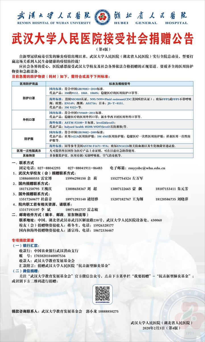 武汉大学人民医院接受社会捐赠公告及汇款方式