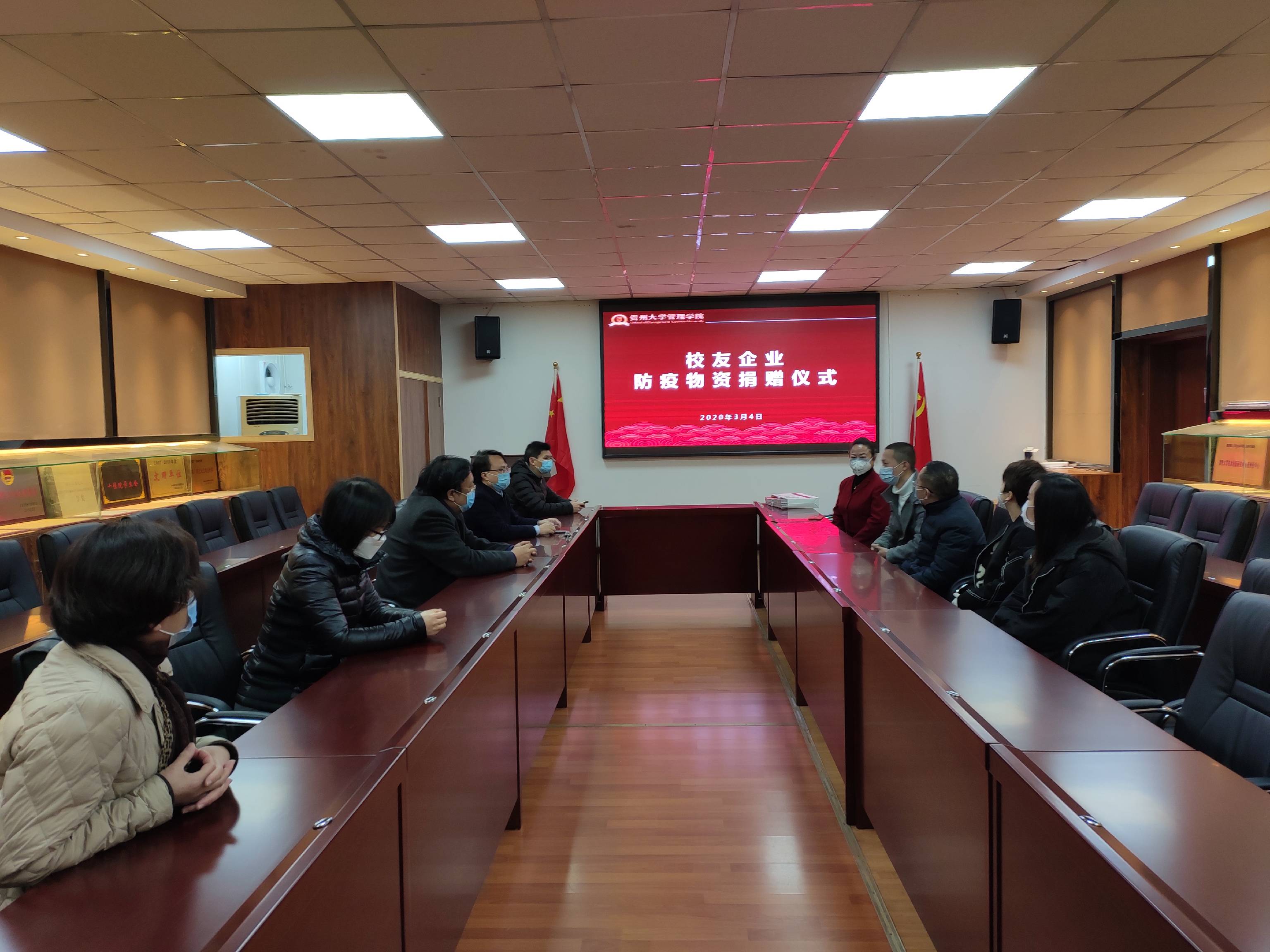 李烨院长首先代表leyu对贵州省中小企业服务集团、贵州金辉煌化工有限公司的爱心捐赠表示感谢,并向他们介绍了贵州大学及管理学院的防疫情和防控情况,双方交流了今后可以开展深度的合作。