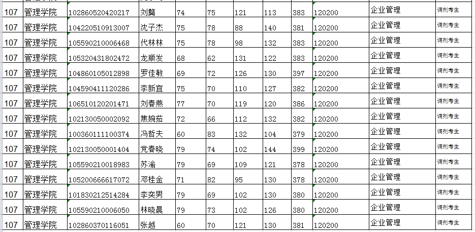 贵州大学2020年管理学院硕士研究生调剂复试名单