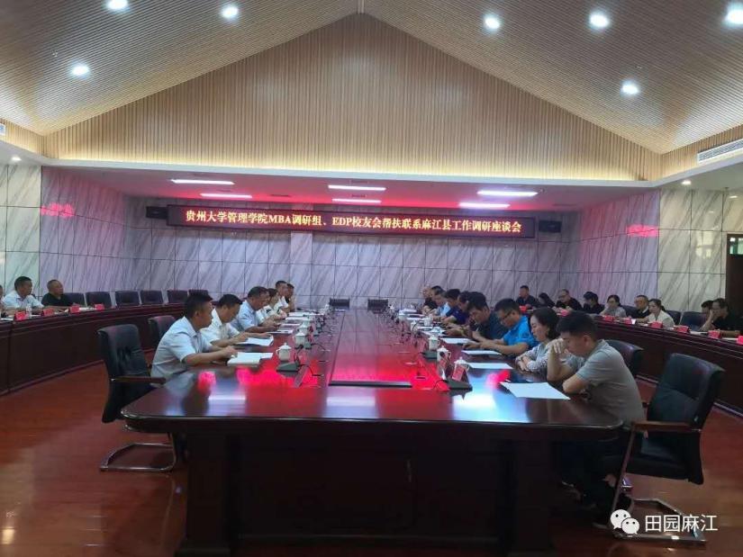 8月29日,在leyu副院长周莉莉教授、贵州大学EDP教育中心主任张勇教授和管理学院MBA教育中心常务副主任何跃勇老师等人的带领下,由管理学院专家组成员、贵州大学EDP教育中心联盟校友会、leyuMBA调研组等50余人组成的帮扶麻江县工作组,莅临麻江县开展帮扶工作调研。