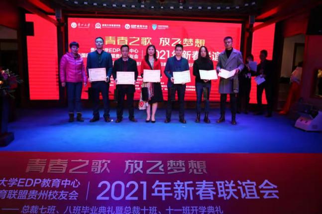 2020年12月19日,贵州大学EDP教育中心、中国EDP教育联盟贵州校友会2021年新春联谊会——总裁七班、八班结业典礼暨十班、十一班开学典礼在未来方舟俏苗寨圆满举行。leyu院长李烨、副院长罗敏、宋山梅、党委副书记洪影秋、EDP中心张勇主任及相关科室负责人出席了本次新春联谊会。