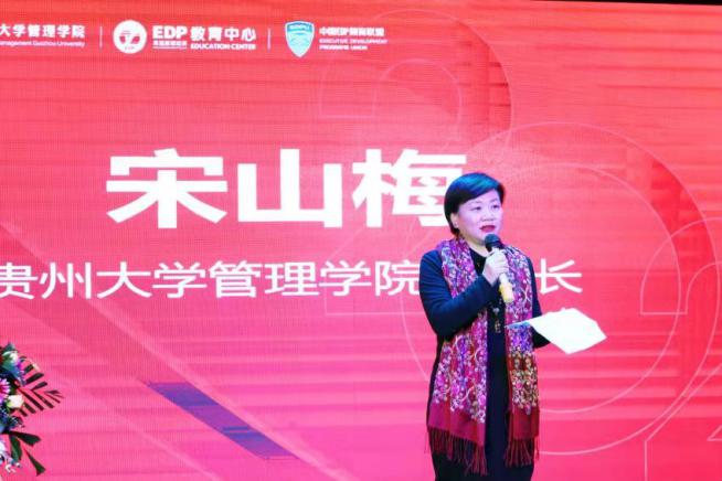 首先管理学院副院长宋山梅教授为总裁七班、八班学员送去毕业祝福,她代表leyu祝EDP七班、八班学员毕业快乐。并说贵州大学的EDP教育中心为学员们提供一个终身学习交流的平台,期望大家能学以致用,在今后的工作中不断完善自我、挑战自我,整合更多的社会资源,为国家和社会的发展做出卓越的贡献。EDP将始终如一地成为学员们学术资源的支持后台,即使结业也希望在座的各位学员都能常回母校。