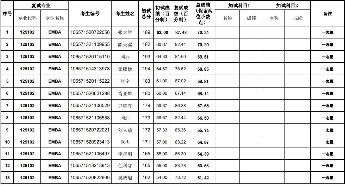 贵州大学2021年管理学院EMBA硕士研究生复试结果公示